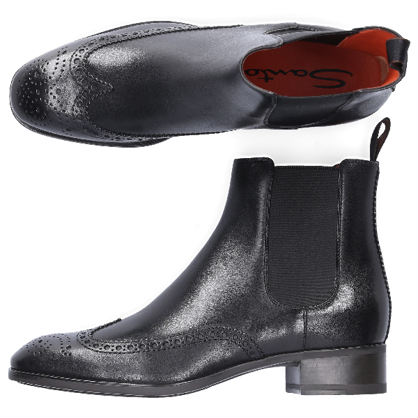Santoni Chelsea Boots 55133 Kalbsleder Lochmuster Schwarz In Black Modesens